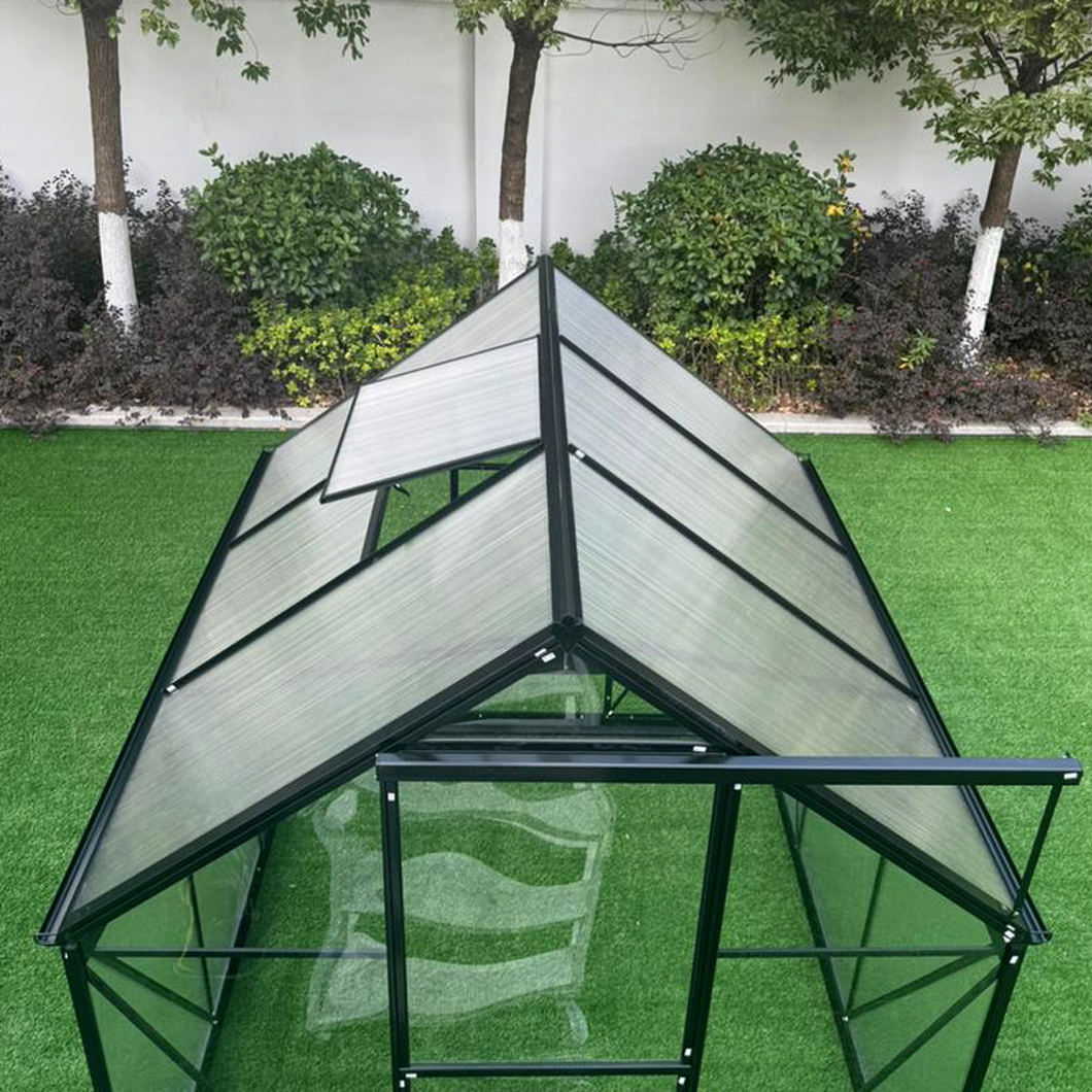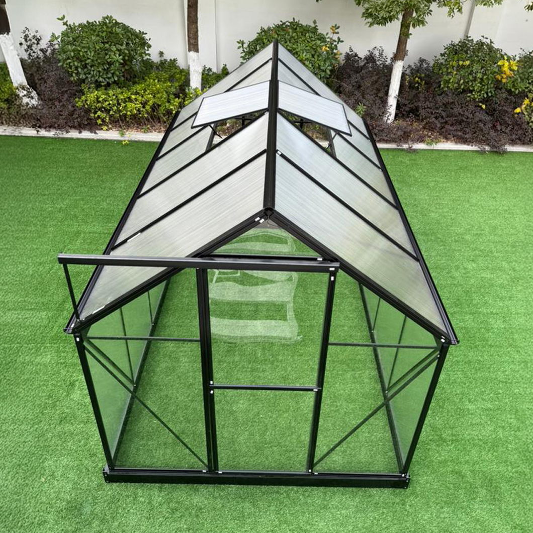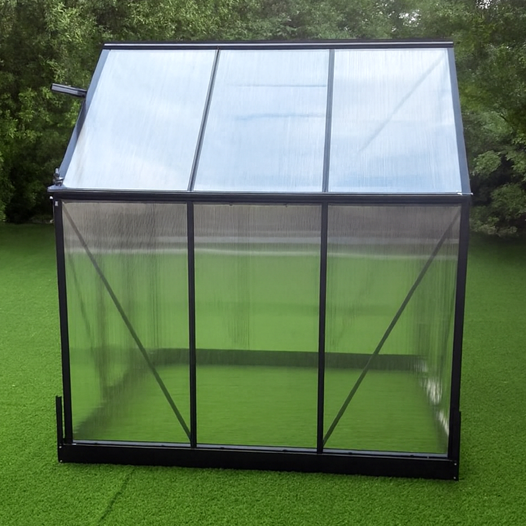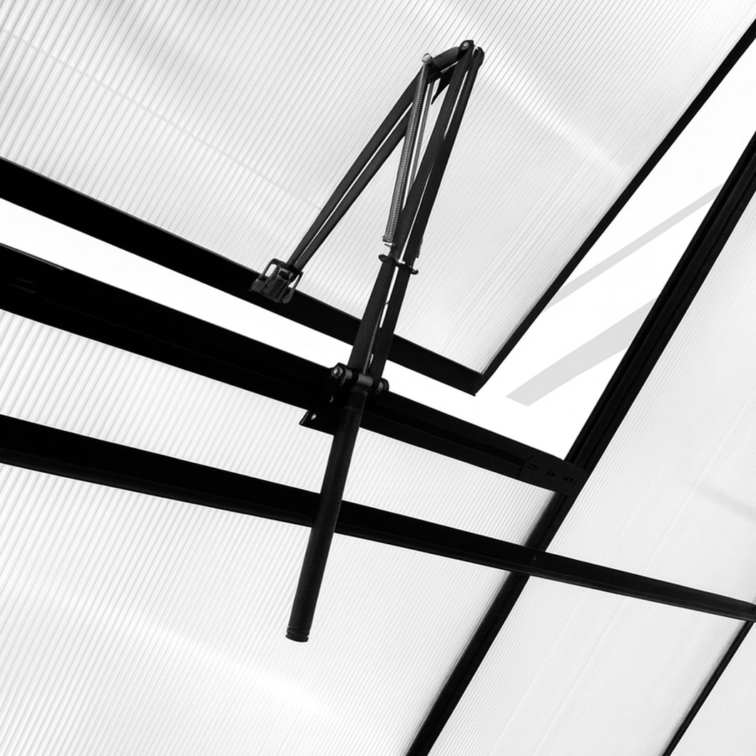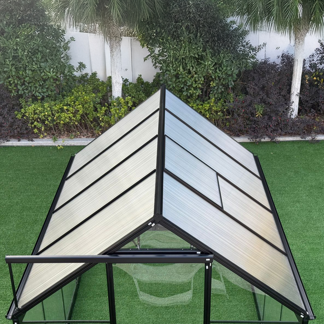 • Päädyt: Kristallinkirkas 0,5 mm polykarbonaatti lähes 100 % valonläpäisyllä – kasvien seuranta on helppoa.