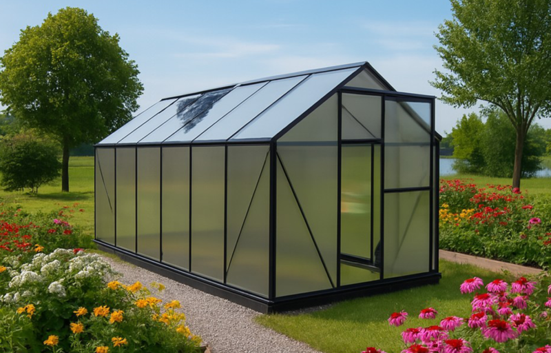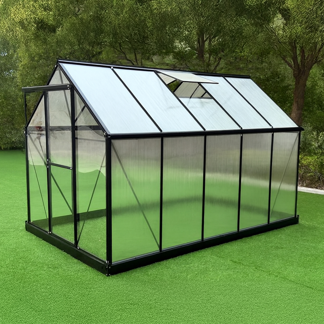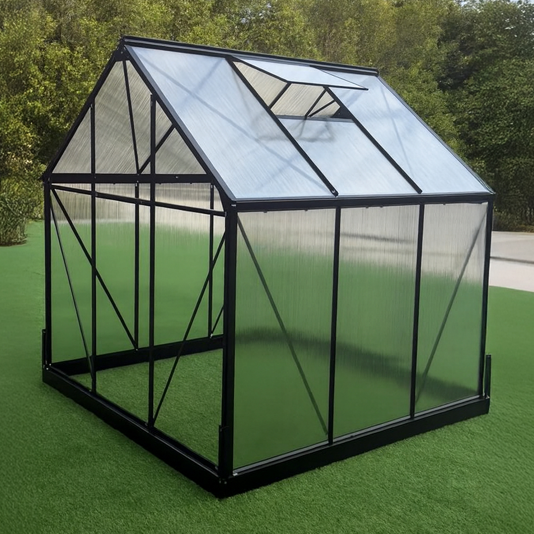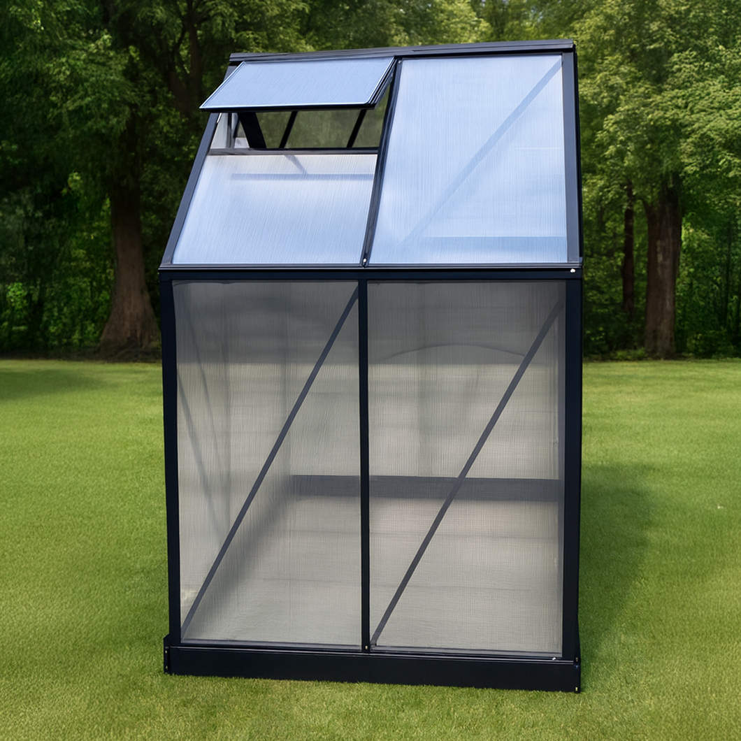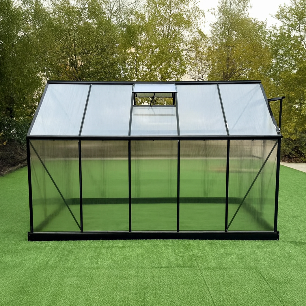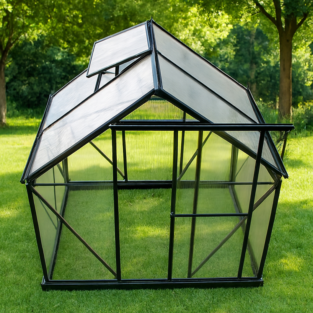 • Päädyt: Kristallinkirkas 0,5 mm polykarbonaatti lähes 100 % valonläpäisyllä – kasvien seuranta on helppoa.