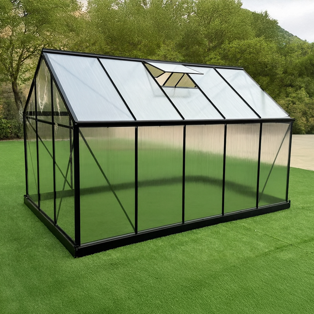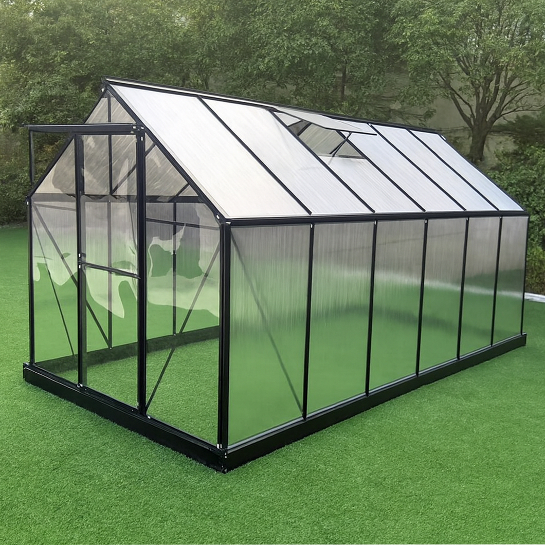 • Seinät ja katto: 4 mm UV-suojattua polykarbonaattikennolevyä