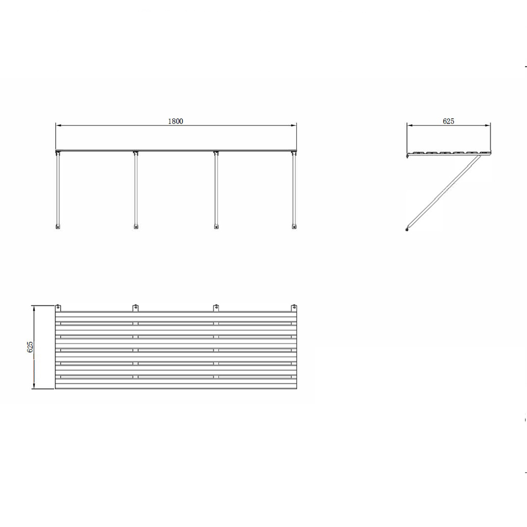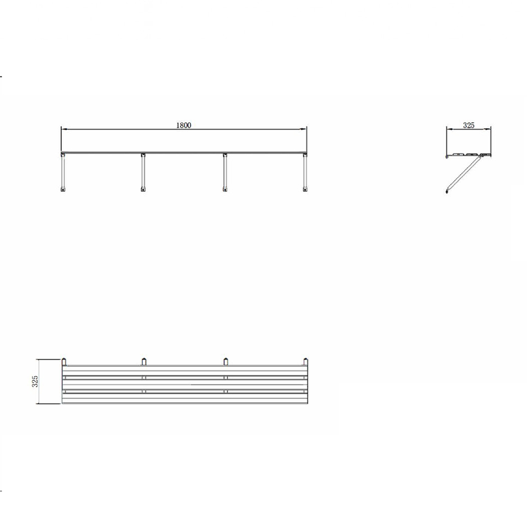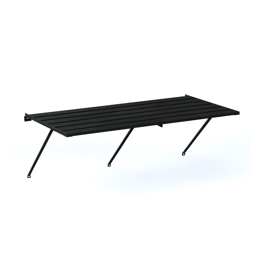 Tukeva alumiinirunko on helppo koota ja asentaa. Hyllyssä on 6 tukevaa alumiinisälettä, ja hyllyn leveys edesauttaa monipuolista käyttöä.
