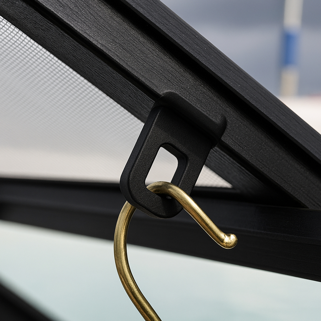 Ripustuskoukku kasvihuoneeseen, koukku kiinnitetään kasvihuoneen runkoon. Pakkaus sisältää 10kpl koukkua.
