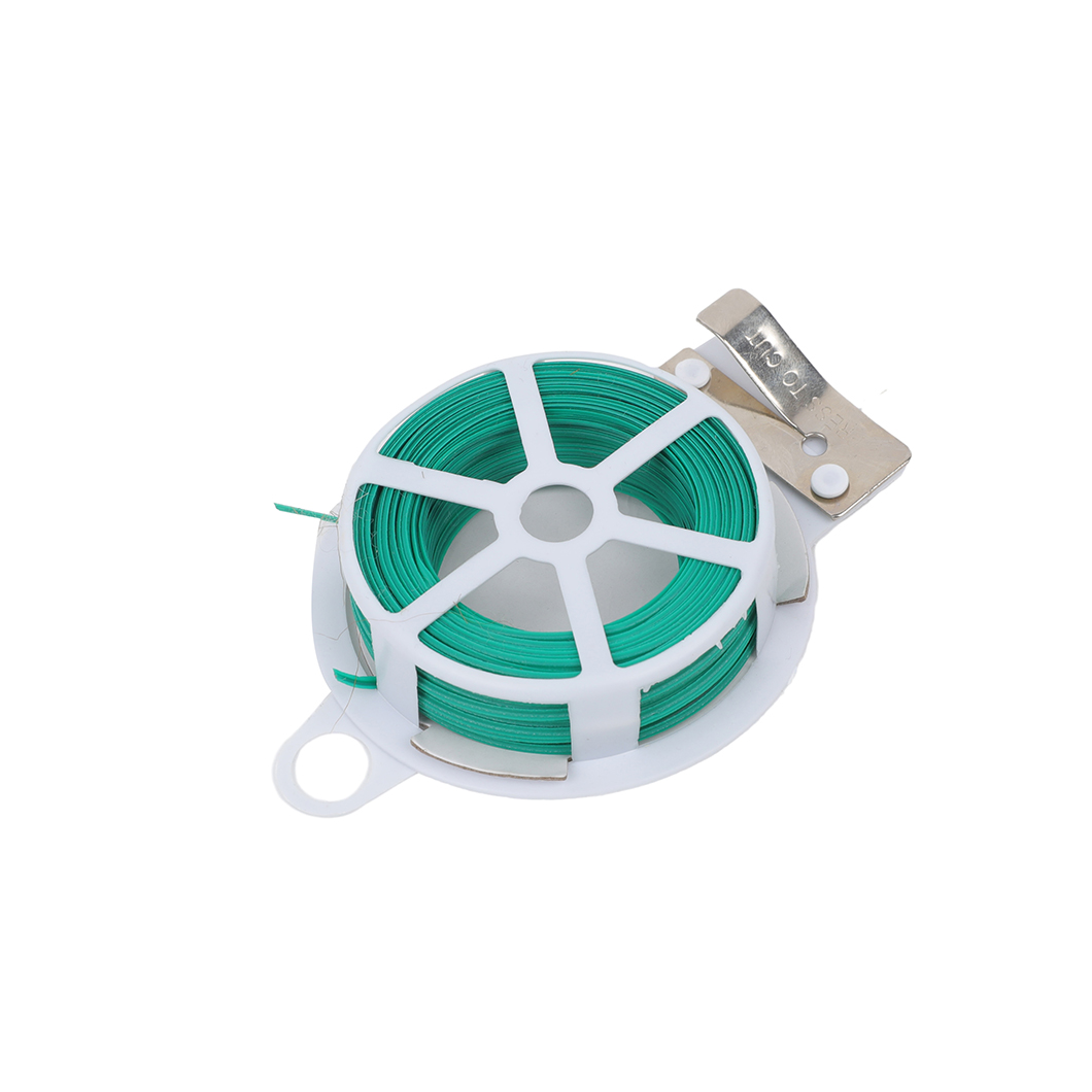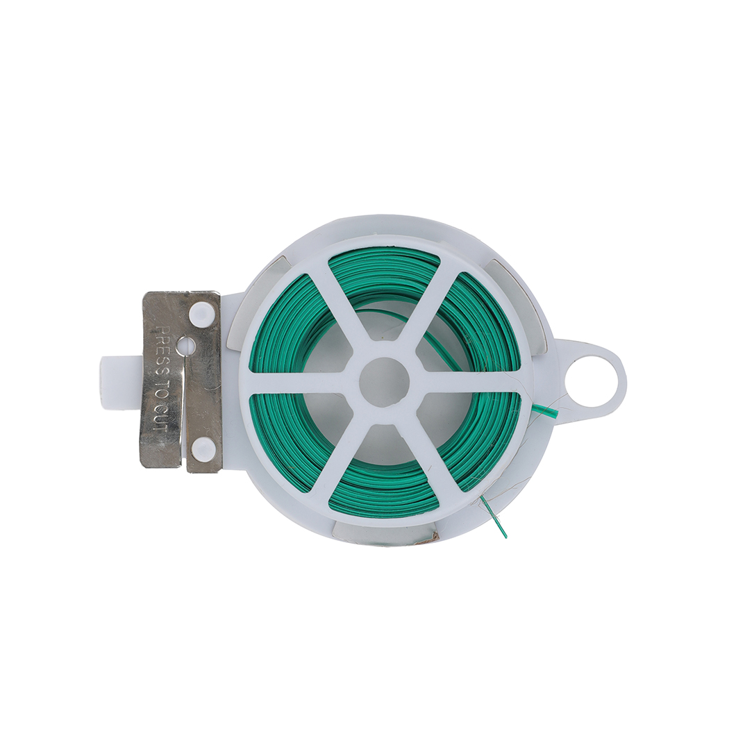 Vihreä muovipäällysteinen sidontalanka puutarhan kasvien ja muiden tuotteiden sidontaan. Langan mukana näppärä leikkuri, jolla saat katkaistua langan kätevästi. Niin sisä- kuin ulkokäyttöön. Kestävä, mutta ei liian jäykkä.